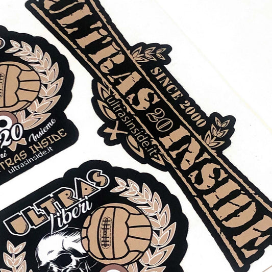 Foglio A5 con 3 adesivi in PVC Ultras Inside del 2020 "20 Anni Insieme" Liberi