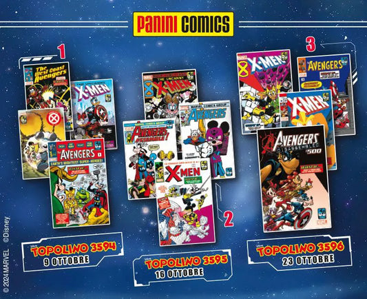 Fumetti TOPOLINO 3594 3595 3596 con gadget 12 Litografie MARVEL 2024 Limited Edition