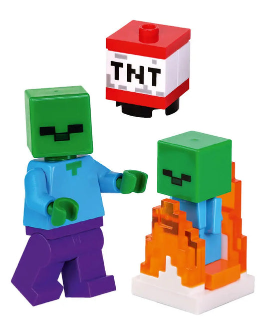 Rivista LEGO Minecraft PLUS n.9 + SET : ZOMBI + BABY ZOMBI IN FIAMME + TNT