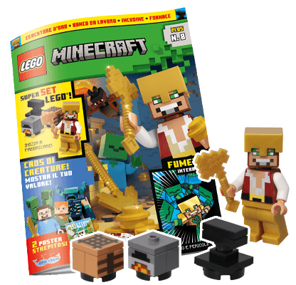 Rivista LEGO Minecraft PLUS n.8 + CERCATORE D’ORO + BANCO DA LAVORO + INCUDINE + FORNACE