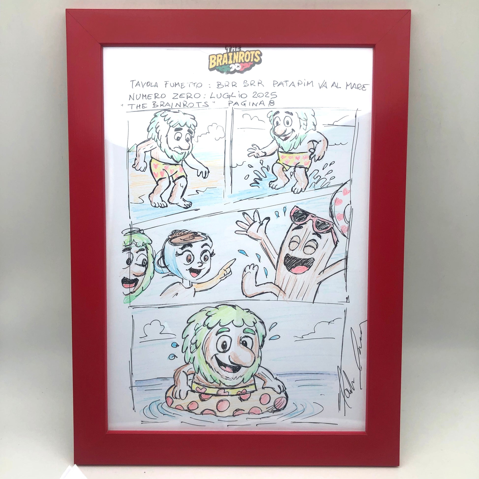 Straordinaria tavola originale del fumetto THE BRAINROT n.0, pagina 8, tratta dalla storia “Brr Brr Patapim va al mare” di Sandro Savarese.