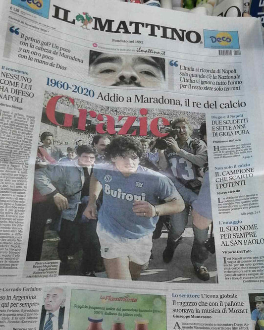 Journal Il Mattino di NAPLES du 26/11 Merci Diego Armando MARADONA 1960-2020