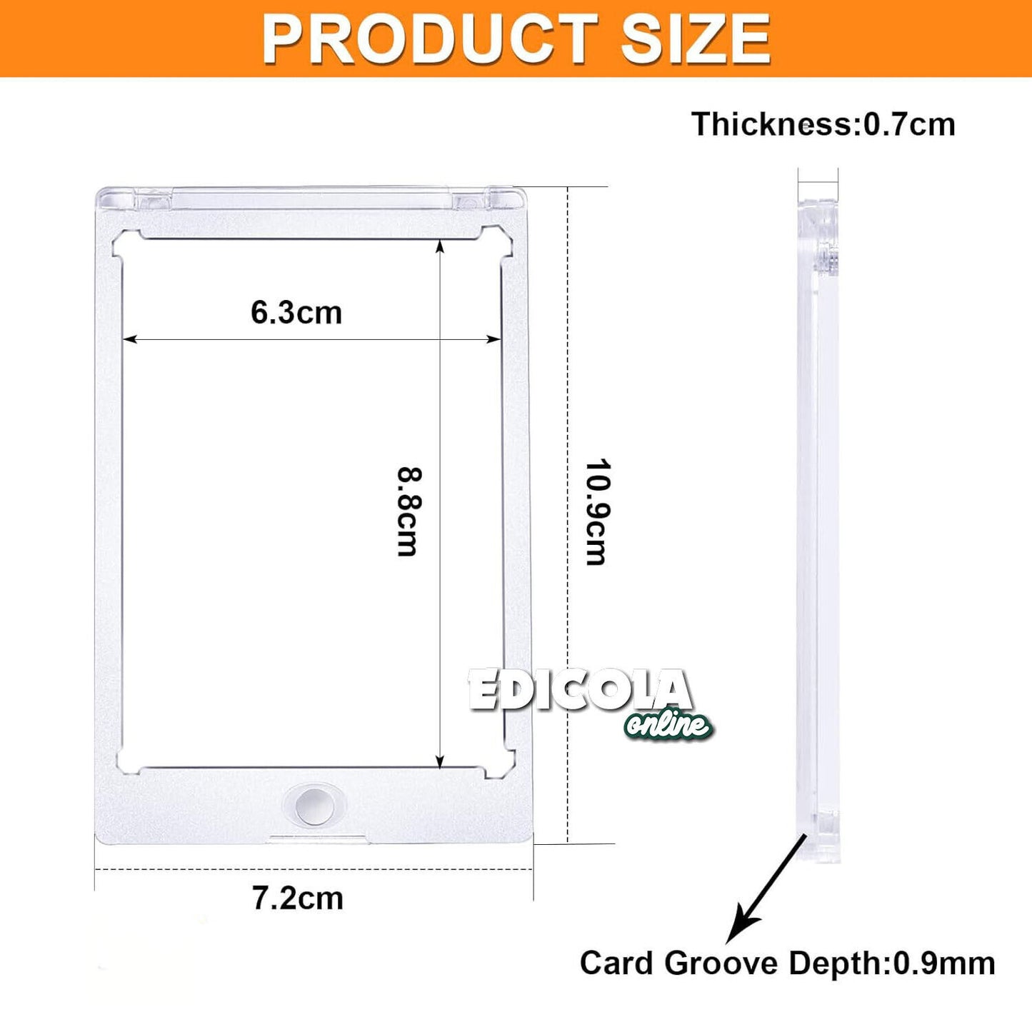 Fabriqués en acrylique de haute qualité, ces étuis sont robustes, durables et offrent une grande clarté. Ils protègent les cartes de l'humidité, de la poussière, des rayures et autres dommages externes. Les coins en forme de diamant à l'intérieur de l'étui empêchent les bords des cartes de se plier, gardant ainsi les cartes intactes.