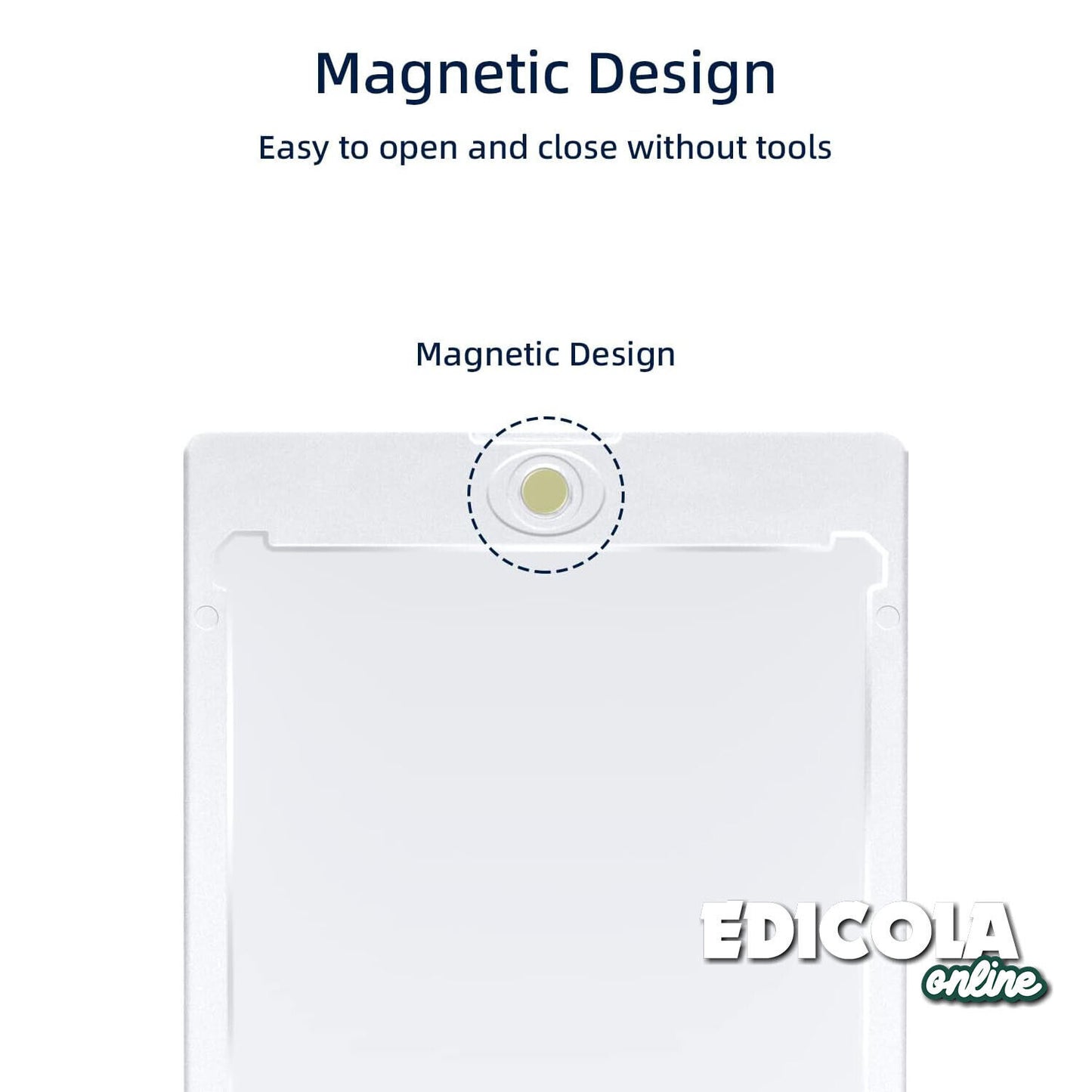 La fermeture magnétique ronde sur le dessus garantit que la carte reste bien en place, tandis que l'ouverture facile vous permet d'accéder et de changer de carte sans effort. Parfait pour afficher et stocker des cartes à collectionner, des cartes de sport et plus encore. Un cadeau idéal pour les passionnés de collections !