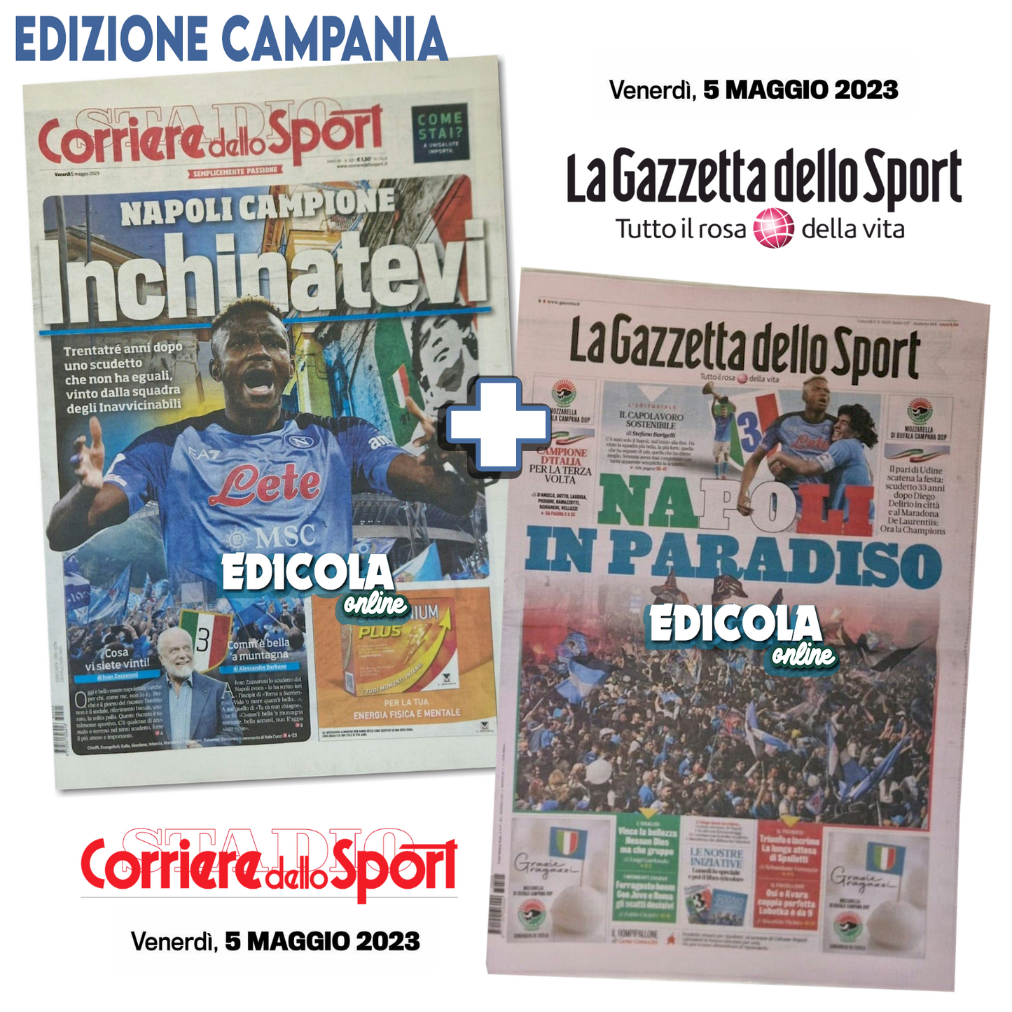 2x Giornale Gazzetta + Corriere dello Sport 5 mai 2023 3e Naples Football Scudetto