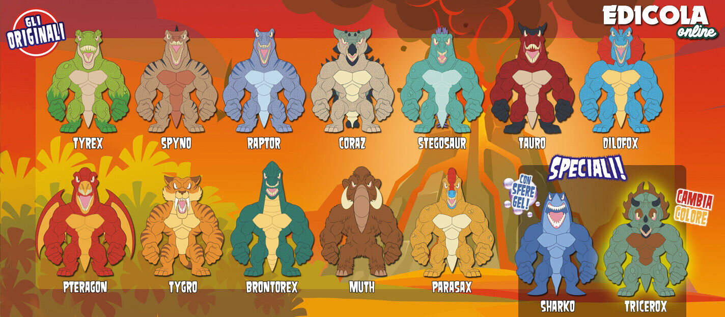 Recherchez les spéciaux : Sharko, avec des sphères de gel, et Tricerox, qui change de couleur avec la chaleur ! 🔵🔥