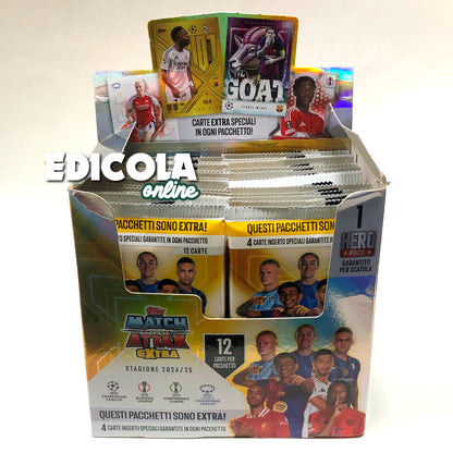 Match Attax 24/25 è ricco di azione con tutti i migliori giocatori della UEFA Champions League, della UEFA Europe League e della UEFA Europe Conference League. Con un'impressionante gamma di categorie di carte come le carte Champions Players, le Vintage Vibes, le Trophy Triumph, le Attax Debut, le carte Heritage, le carte Black Edge, le Chrome Shields, le Blue Crystal Parallels, le 100 Club, le Unbeatable 100 Club e molte altre ancora, questa collezione ha tutto ciò che serve per affrontare l'intera stagione. Non perdetevi le nuovissime carte Chase di questa collezione: carte Gold Edge, carte Hall of Fame Chrome, Platinum Pull LE, Ultimate Talent, carte Genuine Autograph e carte Genuine Autograph Combo! Sarete così fortunati da trovare una carta Jersey Relic? (solo all'interno delle Mega Tin). #questi pacchetti sono super impacchettati