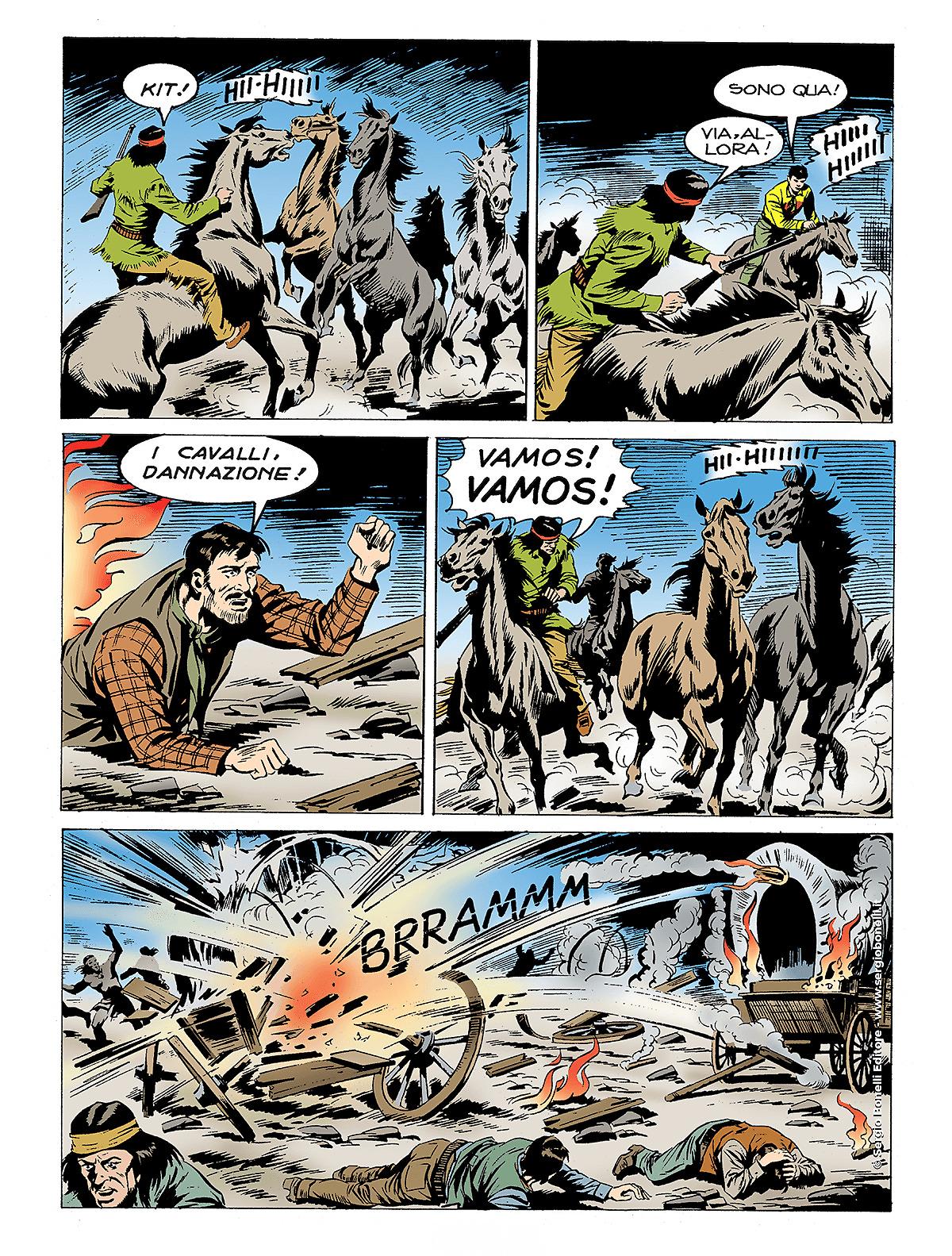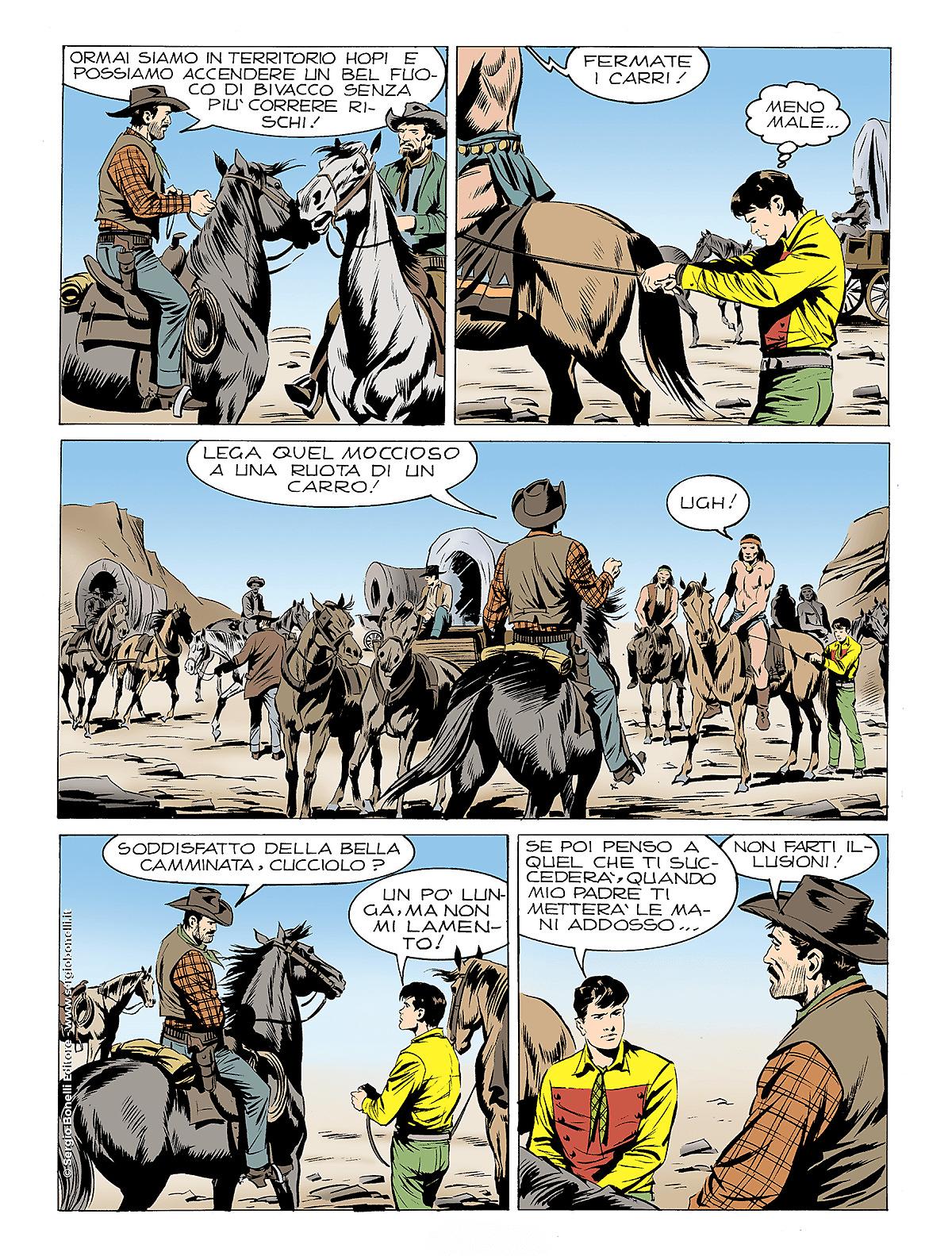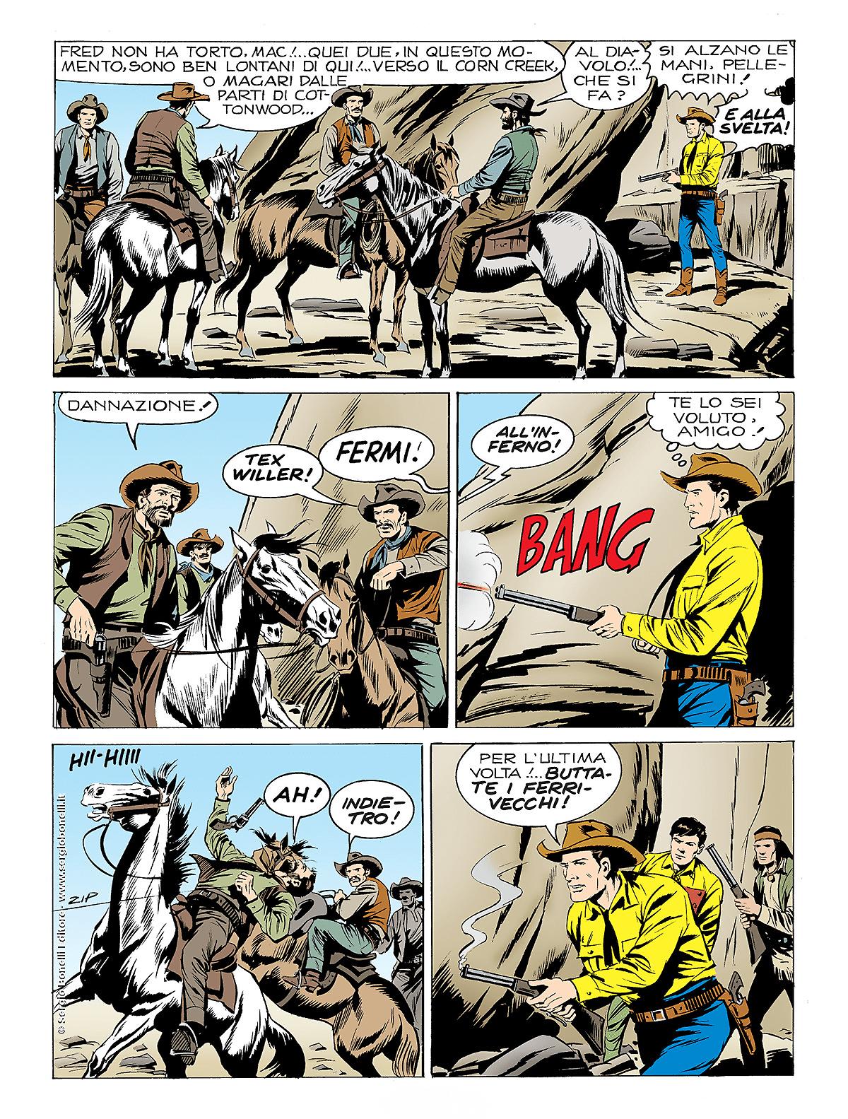 I Cavalieri della Morte mascherati terrorizzano i pastori navajos per conto di Ben Corliss e Timothy Slade: questi, scoperto un giacimento di smeraldi nella riserva hopi, hanno asservito gli ingenui pellerossa ai loro traffici. Tex e i pards gli rompono le uova nel paniere…