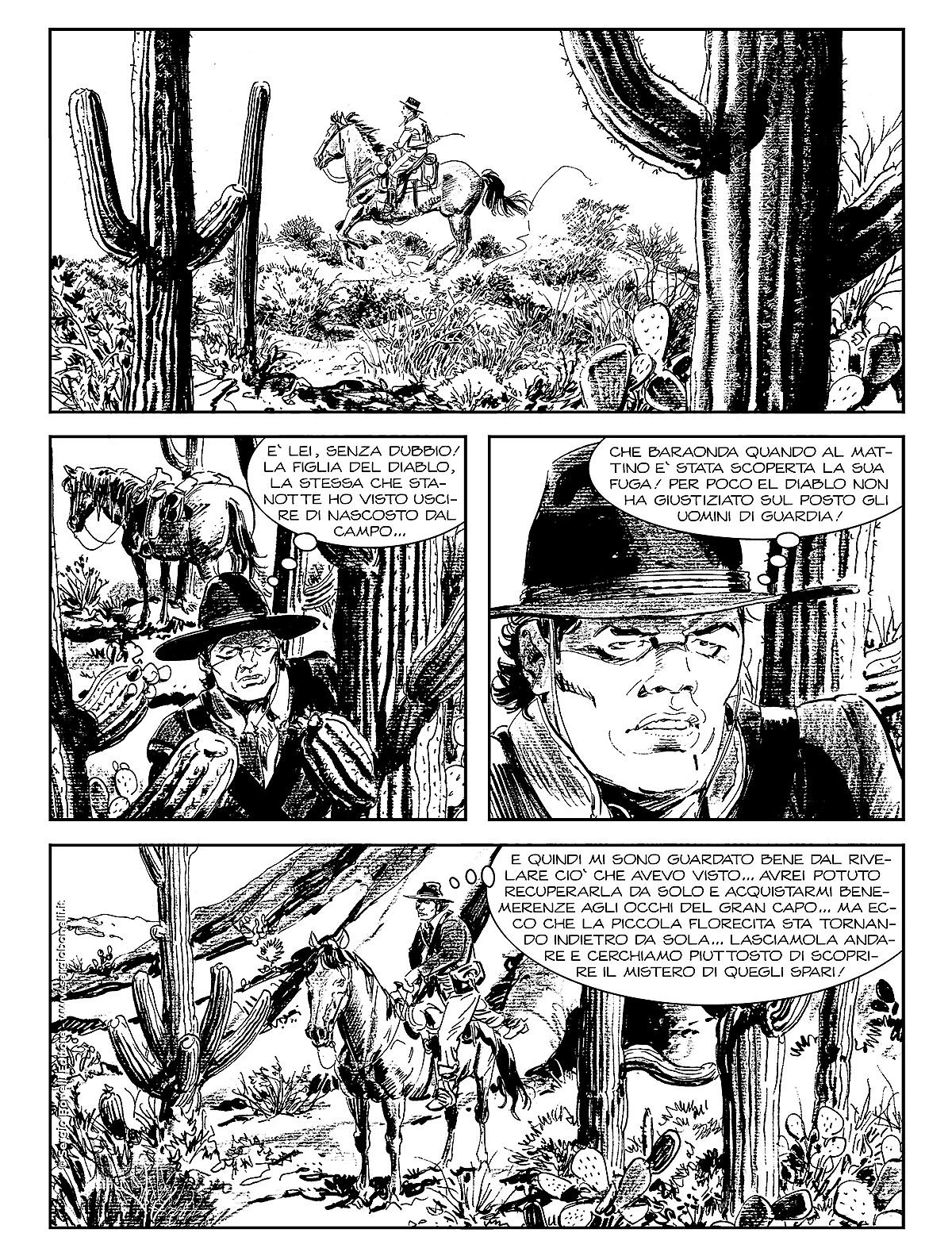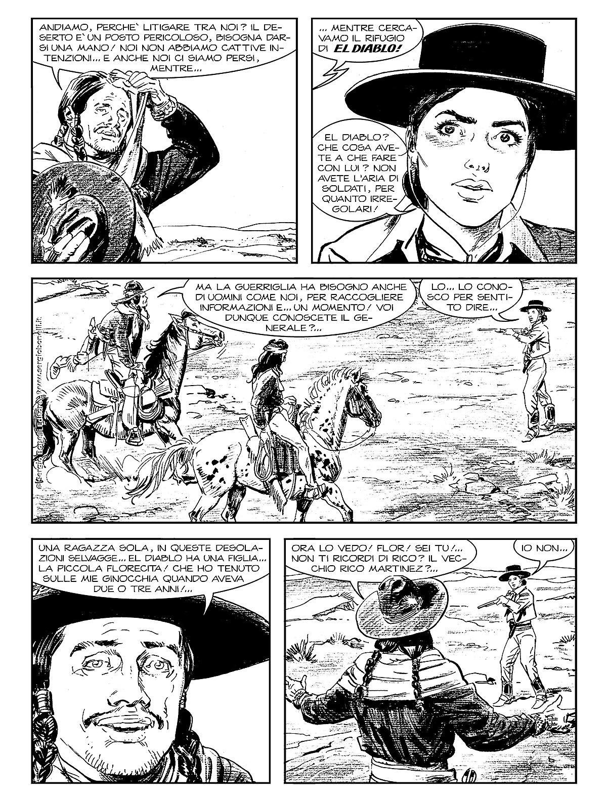 La giovane Florecita scoprirà a sue spese che l’indipendenza si paga a caro prezzo, quando verrà braccata dai comancheros di Pedro Raza… Invece Tex, infiltratosi nella banda del Diablo, incontra una sua vecchia conoscenza…anzi, due! E uno dei due dà all’altro l’incarico di eliminare il gringo spione!