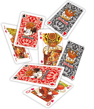 Le Carte d’Autore di Topolino, illustrate dal talentuoso Fabio Celoni, sono un’edizione speciale di carte da gioco che uniscono arte e divertimento. Ogni mazzo (rosso o nero) contiene 52 carte più 2 jolly, con i personaggi Disney reinterpretati in stile medioevale, ispirandosi alle carte napoletane e francesi e realizzati con splendidi acquerelli.