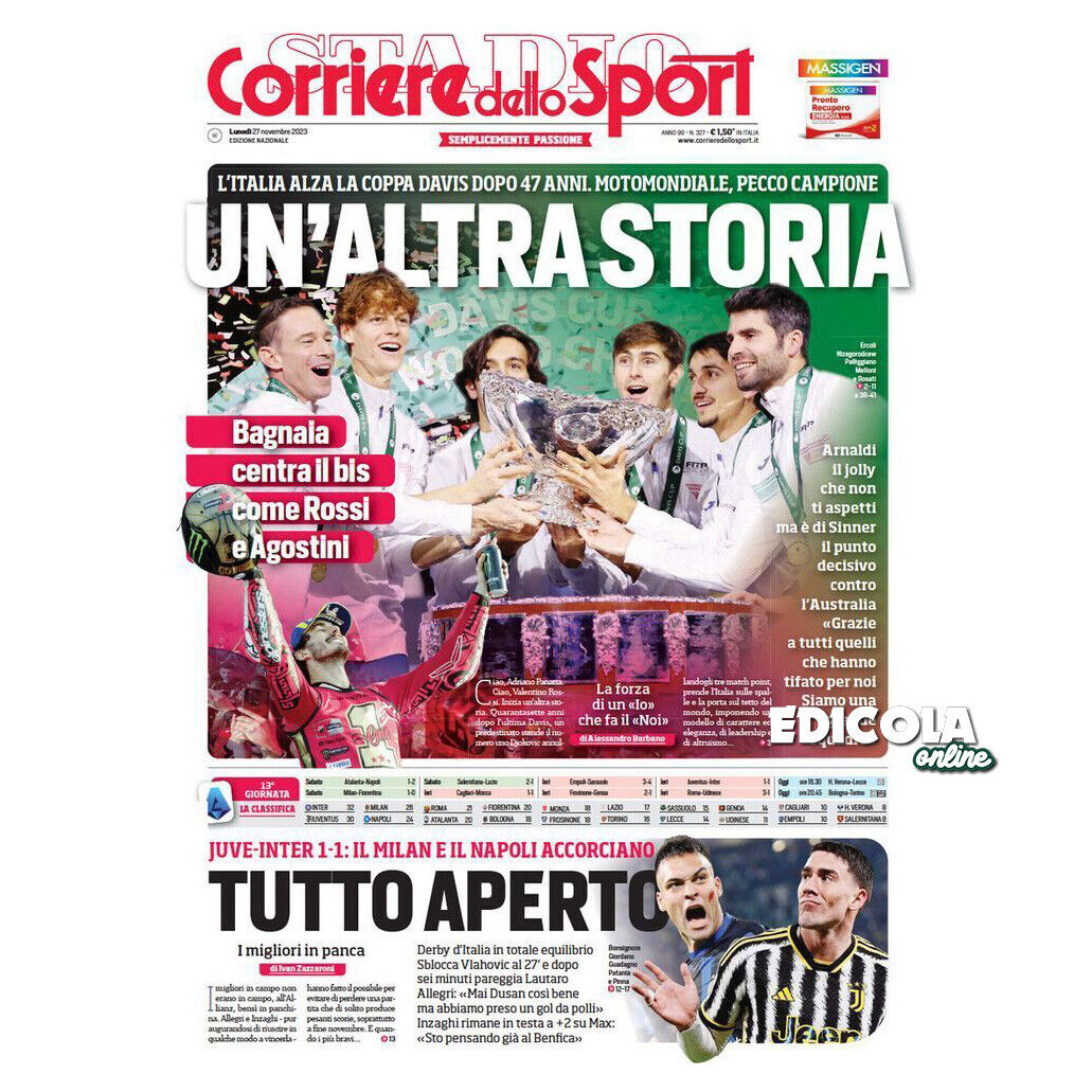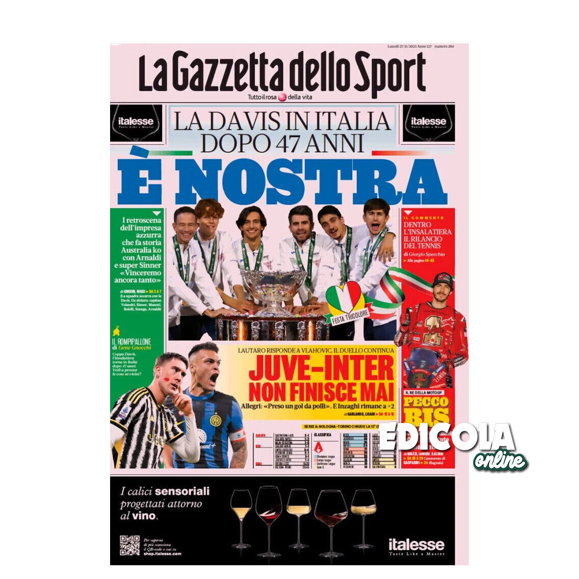 Giornale Corriere Gazzetta dello Sport tutto Coppa Davis BAGNAIA SINNER ITALIA