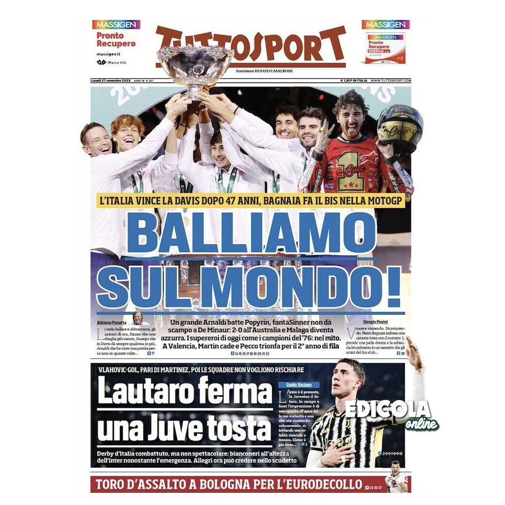 Dedicata alla domenica di gloria dello sport italiano, celebrando la storica vittoria in Coppa Davis e il bis Mondiale di Francesco Bagnaia in MotoGP.