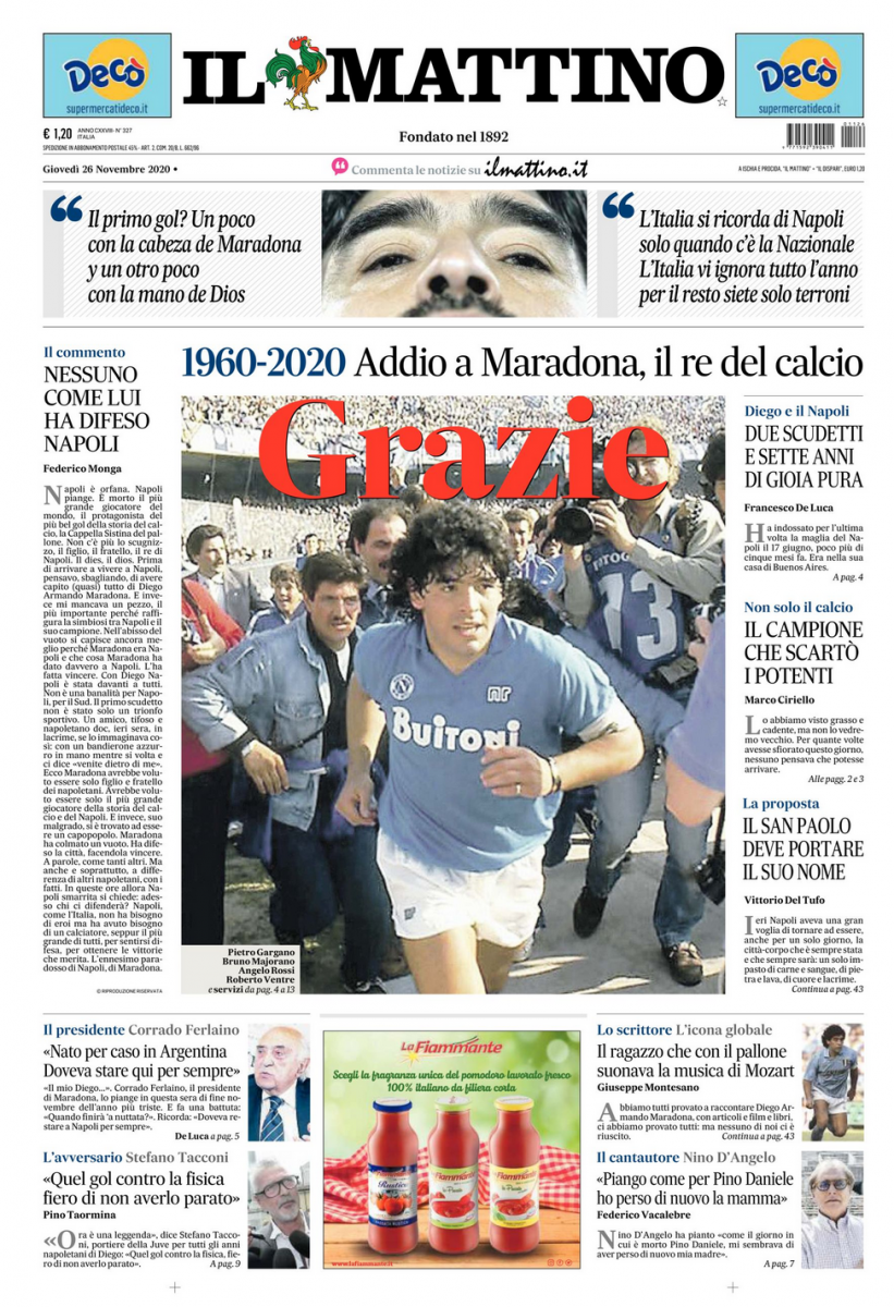 Giornale Il Mattino di NAPOLI del 26/11 Grazie Diego Armando MARADONA 1960-2020