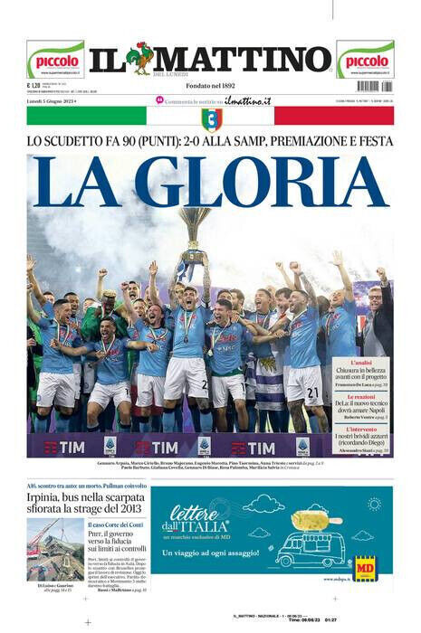 • 5 Giugno 2023: Il Mattino "La Gloria" (Festa al Maradona)