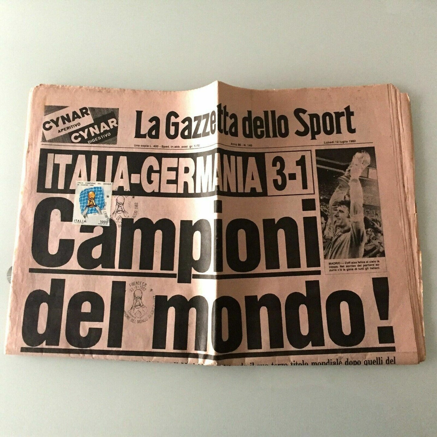 La Gazzetta dello sport ITALIA 12 Luglio + Francobollo Campioni del Mondo 1982