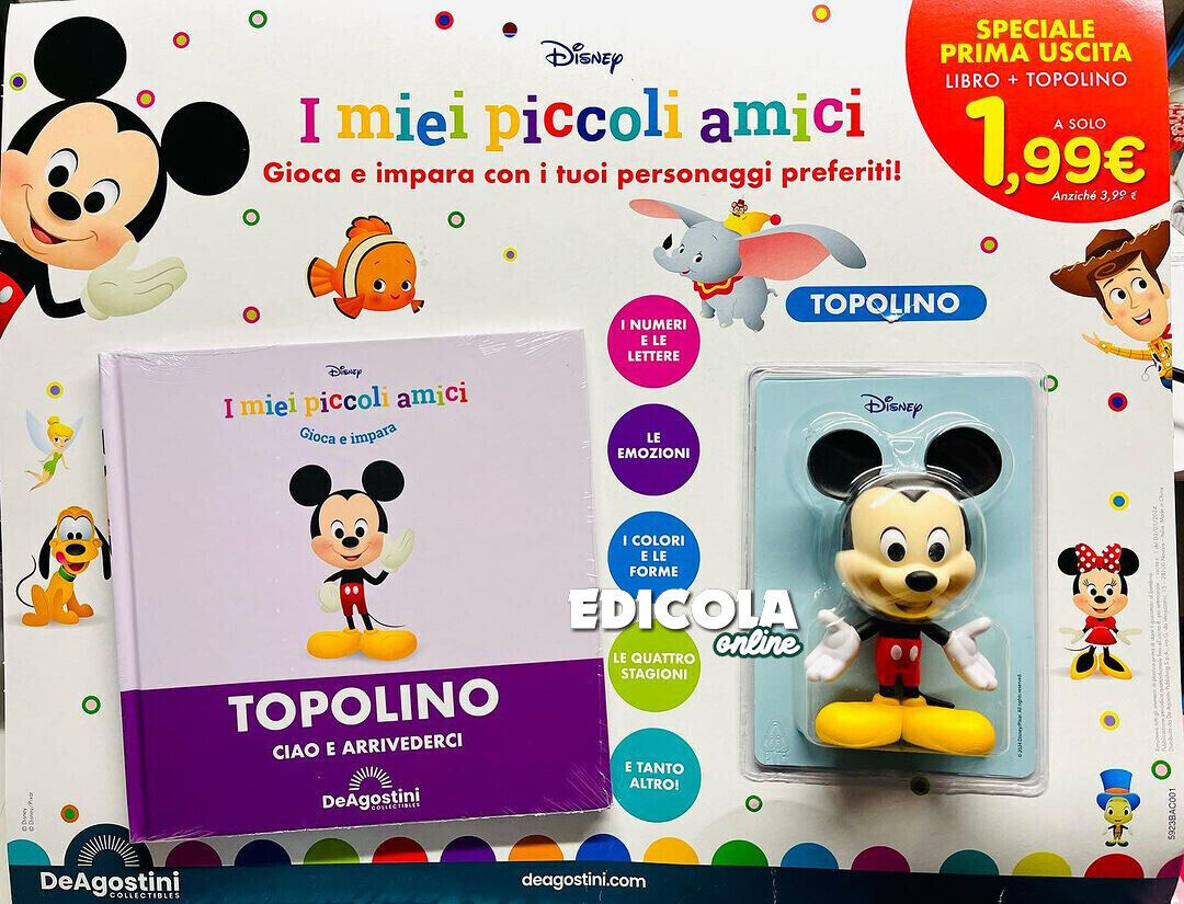 Libro i miei piccoli amici Disney con Statua di Topolino Collezione De Agostini
