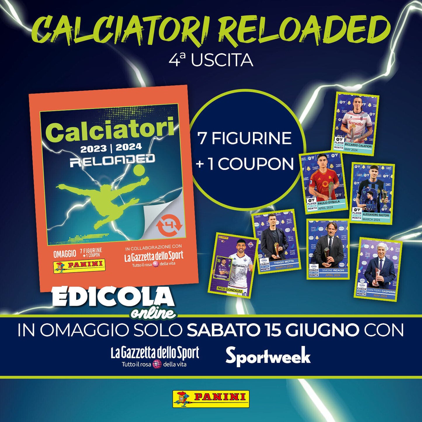 Sportweek 15 Giugno 2024 + Quarta Bustina Reloaded Calciatori Figurine Panini 4°